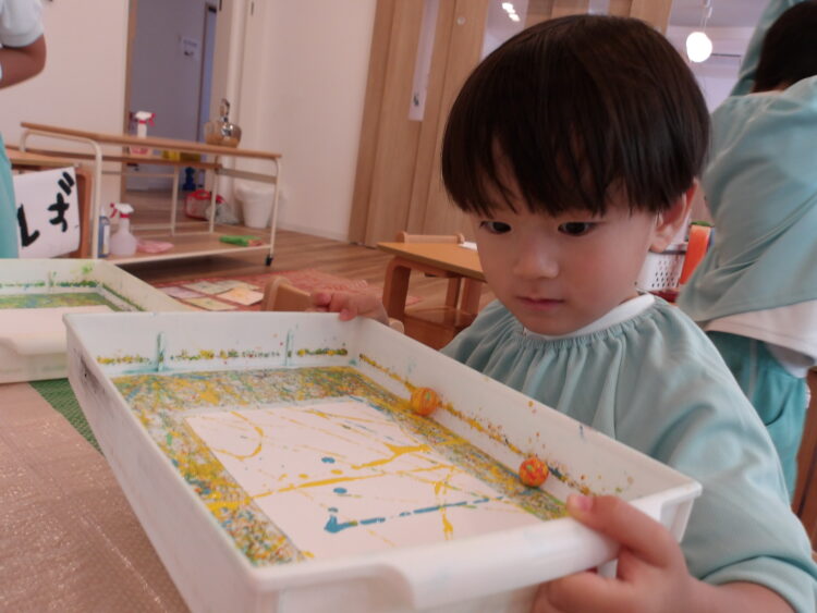 一度に沢山の玉を転がして、たくさんの模様を描く姿もありましたよ。