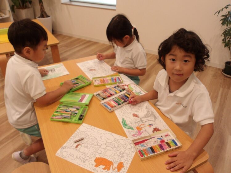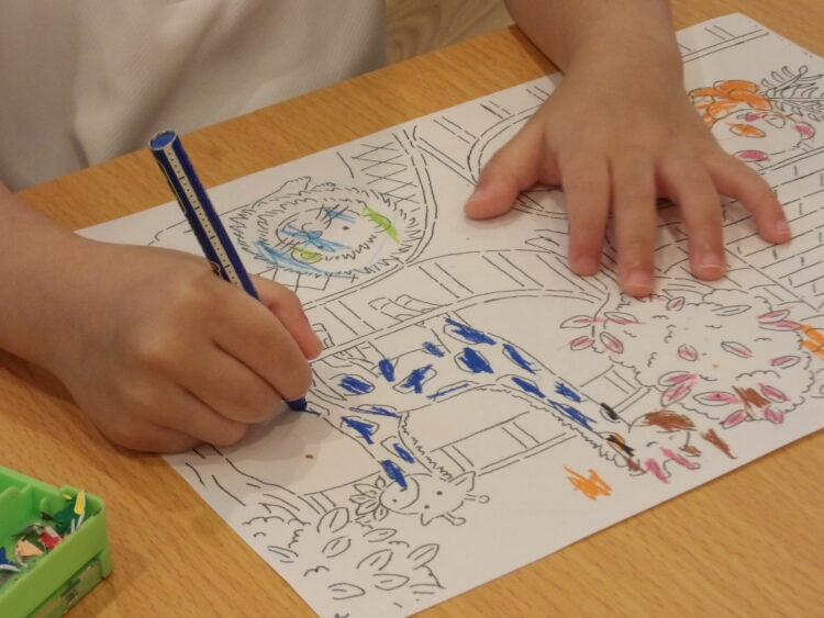 「新しい塗り絵だ〜!」と早速色塗り開始!