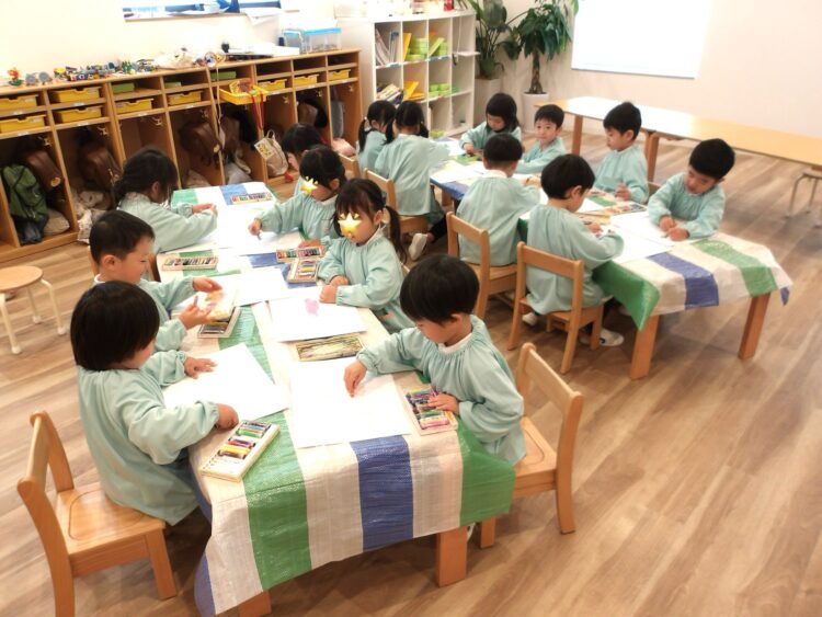 画用紙が配られるとすぐに思いおもいに描き始める子どもたち。