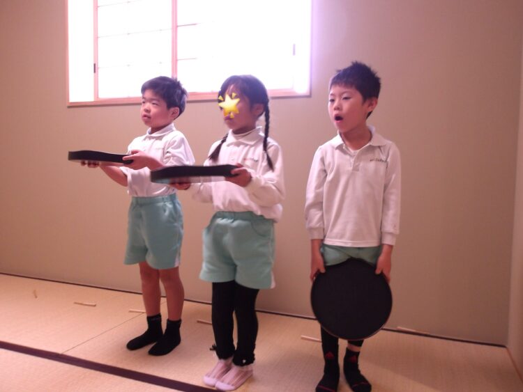 先月につづき、お盆の持ち方やお盆を持ったまま立つ/座るのおさらいをしました。