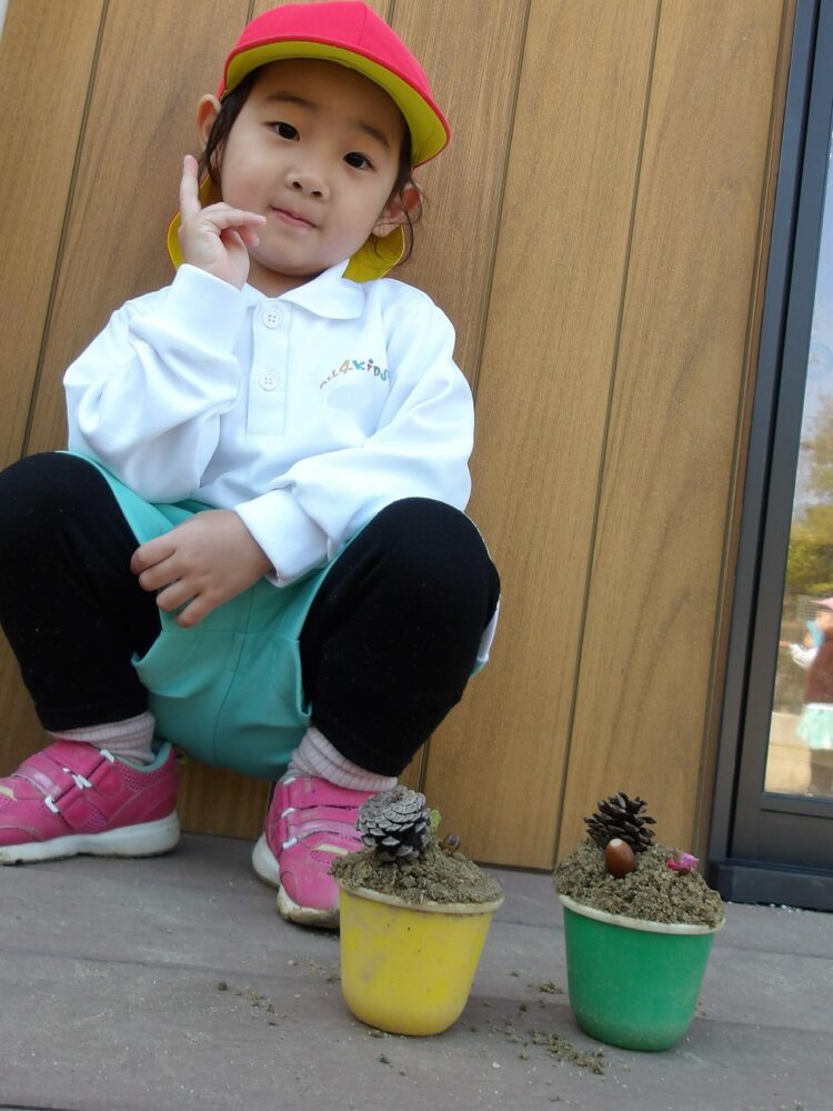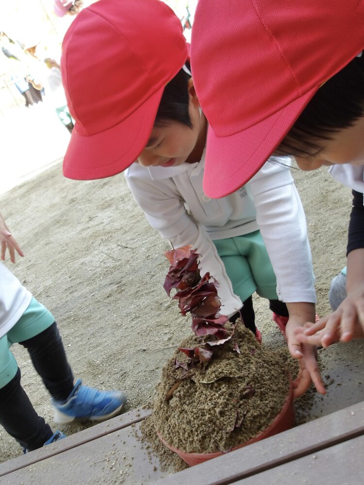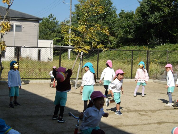 歌を口ずさみながら遊ぶお友だち。秋らしい楽しいお外あそびの時間になりました☺️