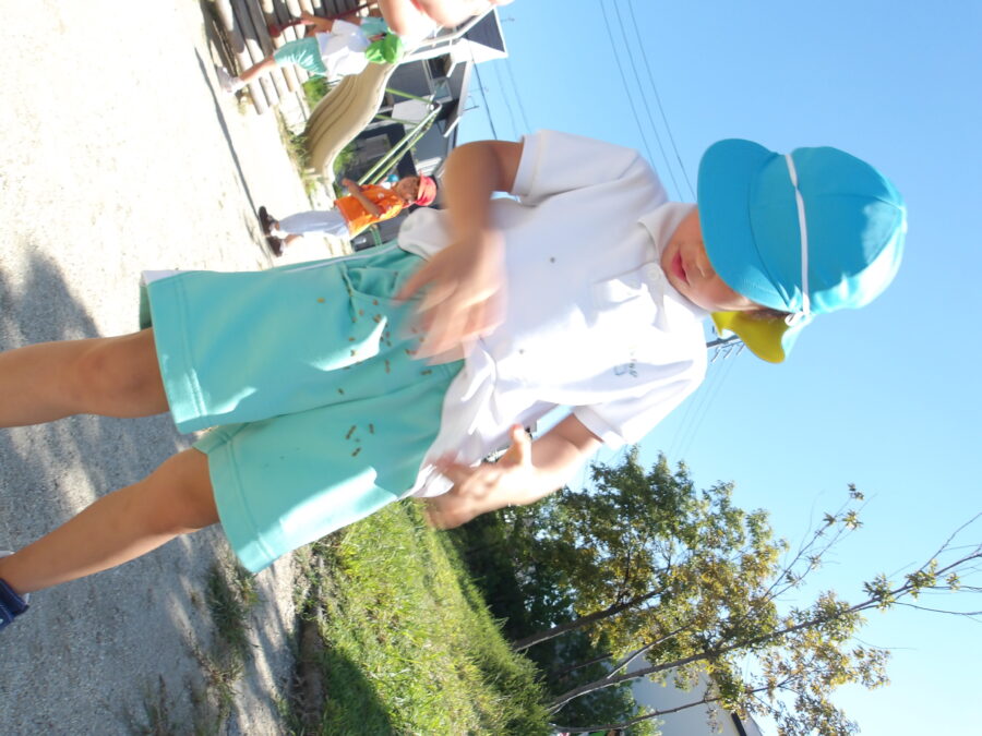 友だちと協力してくっつき虫を取っていました。
