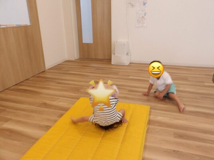マットでは自由に何をやってもいいゾーンにしました!前回りに後転!ゴロゴロとくつろいでいる子もいました!