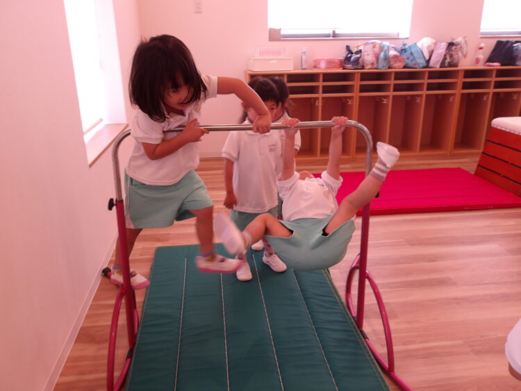 なんちゃって体操教室では跳び箱、平均台、鉄棒、マットをしたよ!
