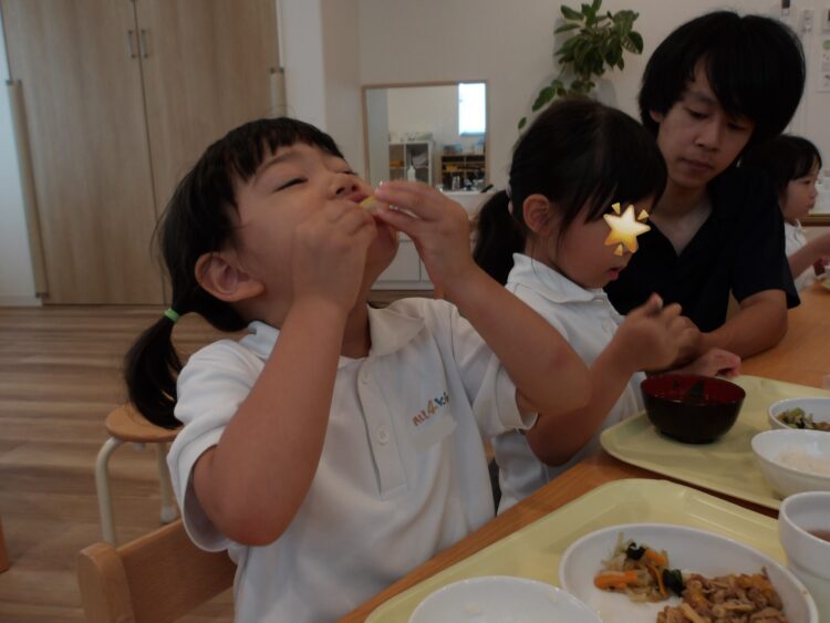 自分たちで育てた旬の野菜を味わった子どもたちでした🥒