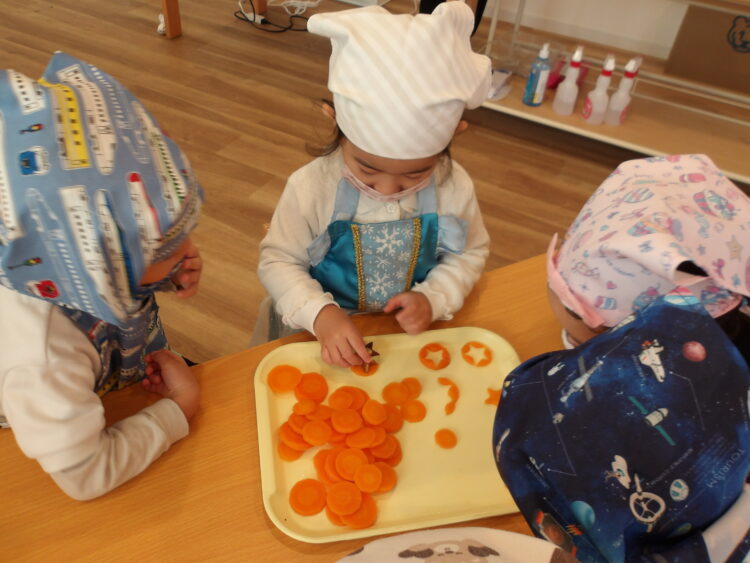 ニンジンをクッキー型でお星様のかたちにしましたよ!