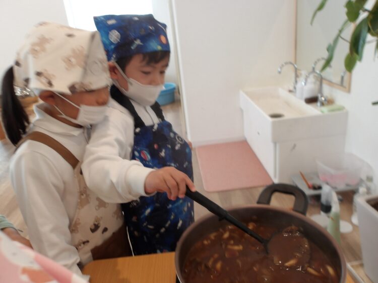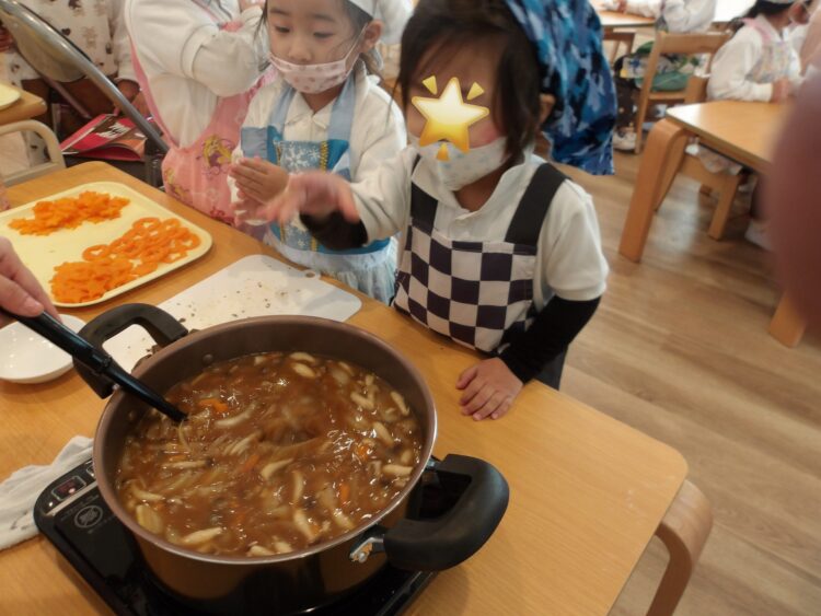 ハヤシライスが完成すると、「やったー!」と拍手をして喜ぶ姿が見られました🤭