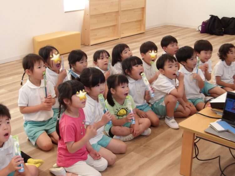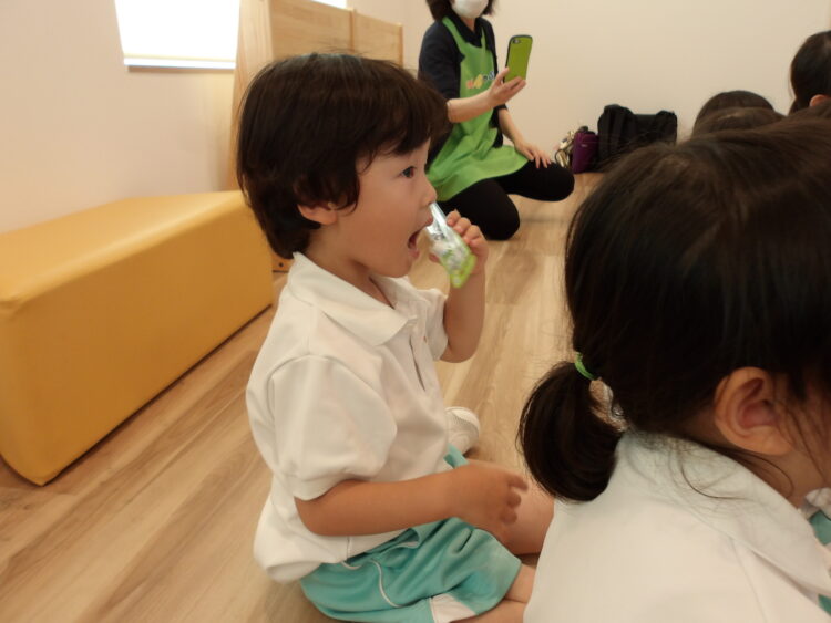 最後ははみがきの歌に乗せて、歯を磨く練習をしました。