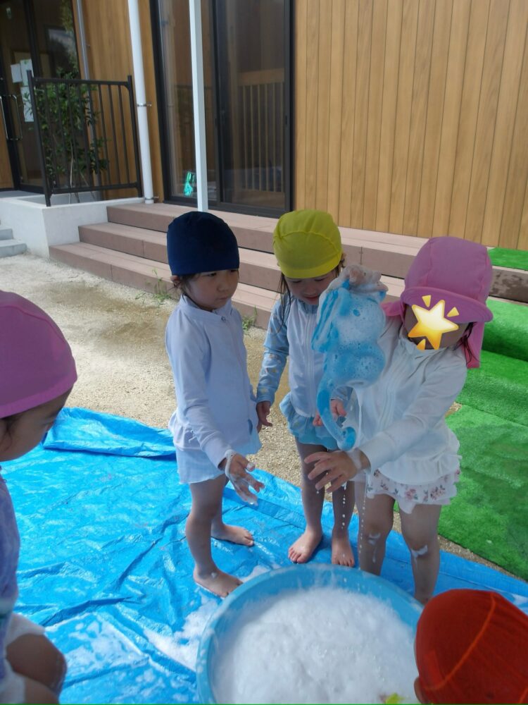 あわあわの水はふわふわ、とろとろの手触りが気持ちいいね🫧