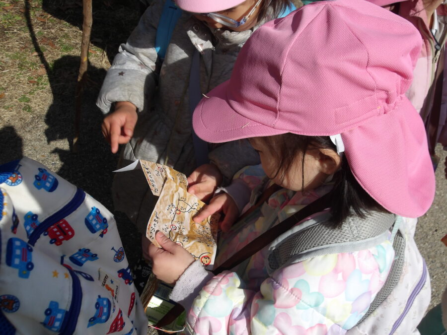朝の会をして、そろそろ出かけようという頃、「ポストにお手紙が入っていたよ」と子どもたち宛のお手紙を園長先生から預かりました。