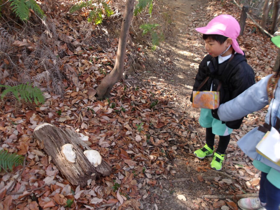 森の中ではきのこを見つけたり、
