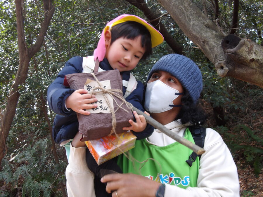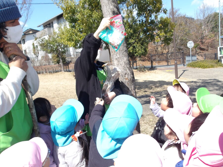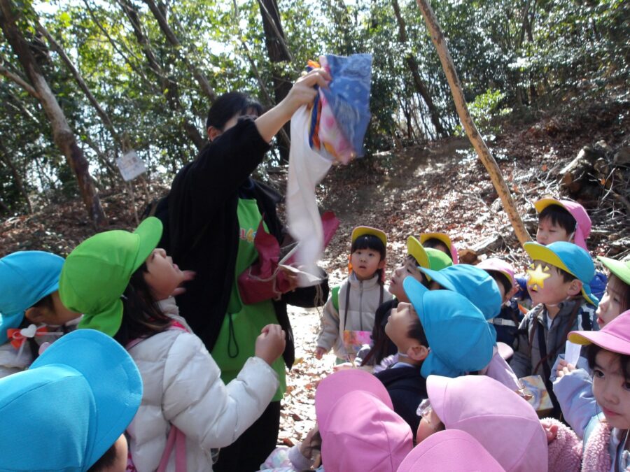 木の穴を見つけると、絵本の中でかんたが歌っためちゃくちゃな“あのうた”をうたって、おばけ達に会おうとする子どもたちです。