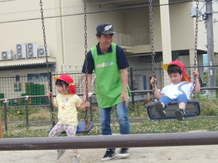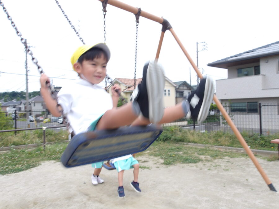 保育者に背中を押してもらうと、風を切って気持ちよさそう🍃