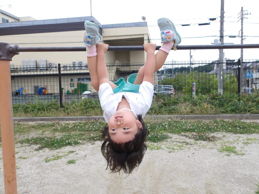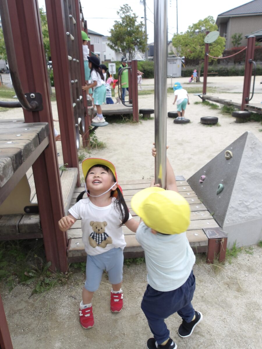 登り棒を登ろうとしたり、上から棒をつたって降りようとしたりする姿も見られました。