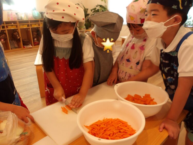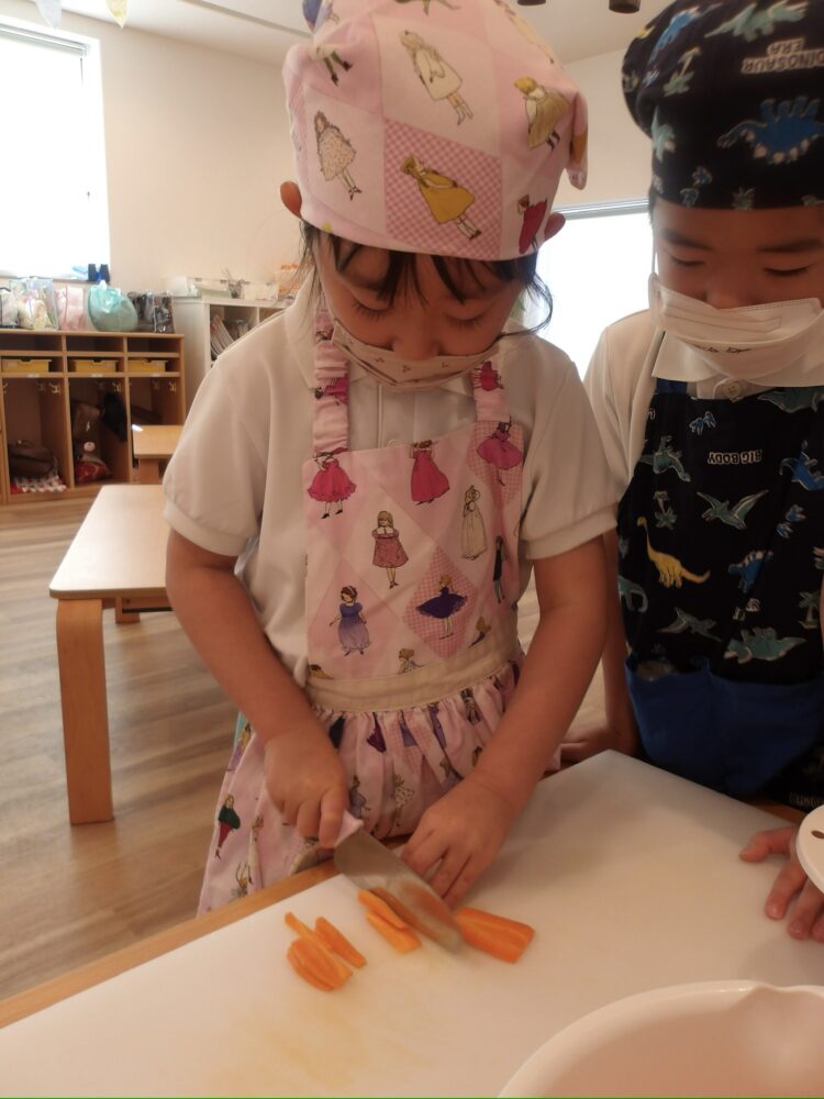 包丁に慣れている子はにんじんを3枚ほど重ねて切りましたよ。