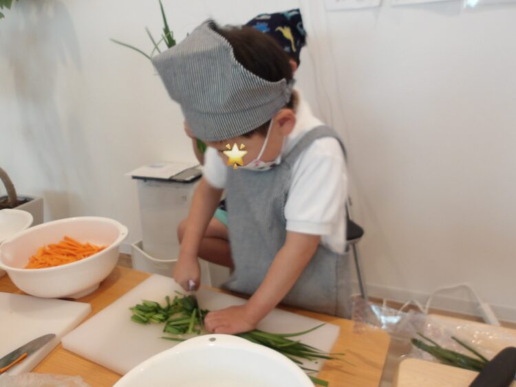 ニラは繊維が硬く少し切りにくかったようです。