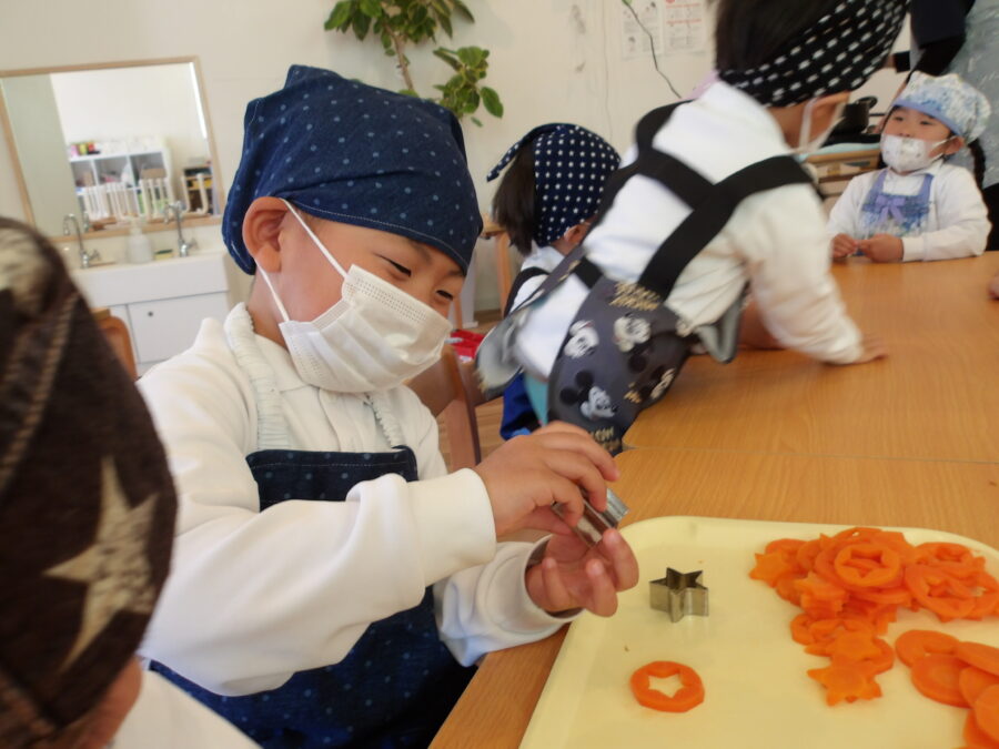 クッキーとは違い、ニンジンの型抜きは硬くて難しかったですが、お星さまの形になると、自然と笑みが溢れてました☺️