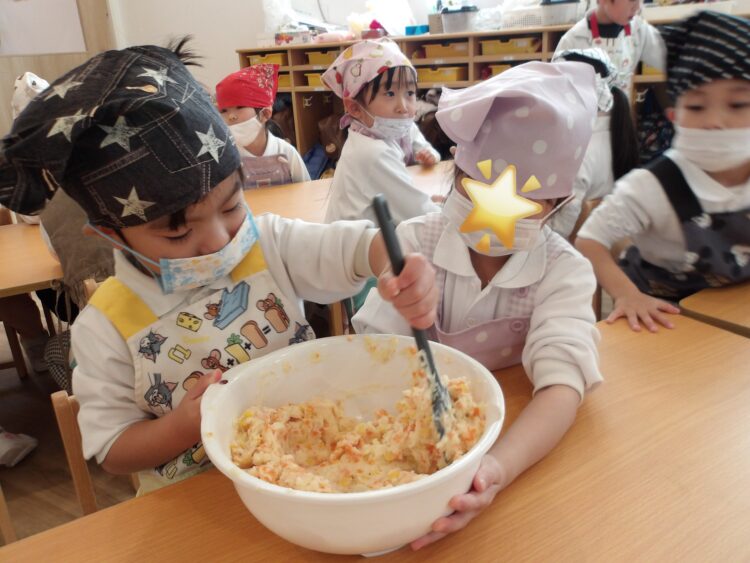 ポテトサラダ作りはみんなで交代しながら協力して作りました。