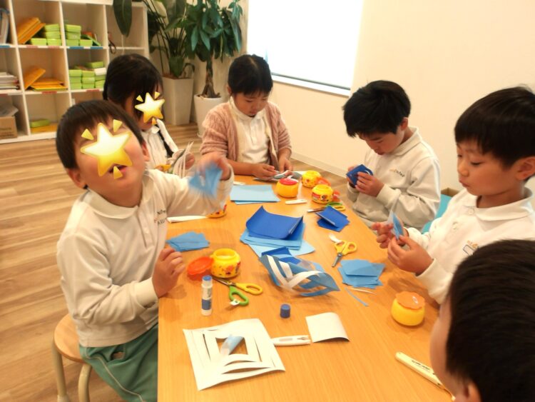 少し難しかったようですが、作り方がわかったお友だちが自然と先生と呼ばれるようになり、「◯◯先生これで合ってる?!」「ねえなんで私先生になってるの!?」と言葉を交わしながら作っていました😂