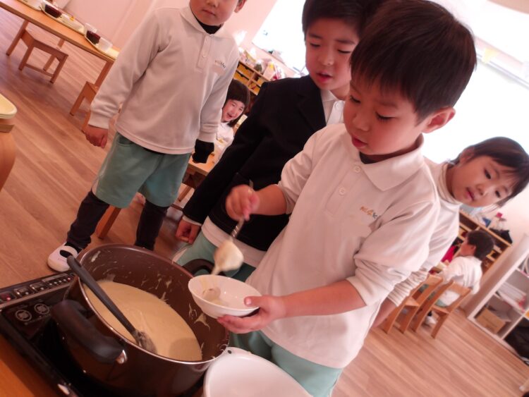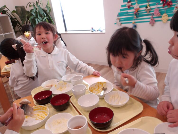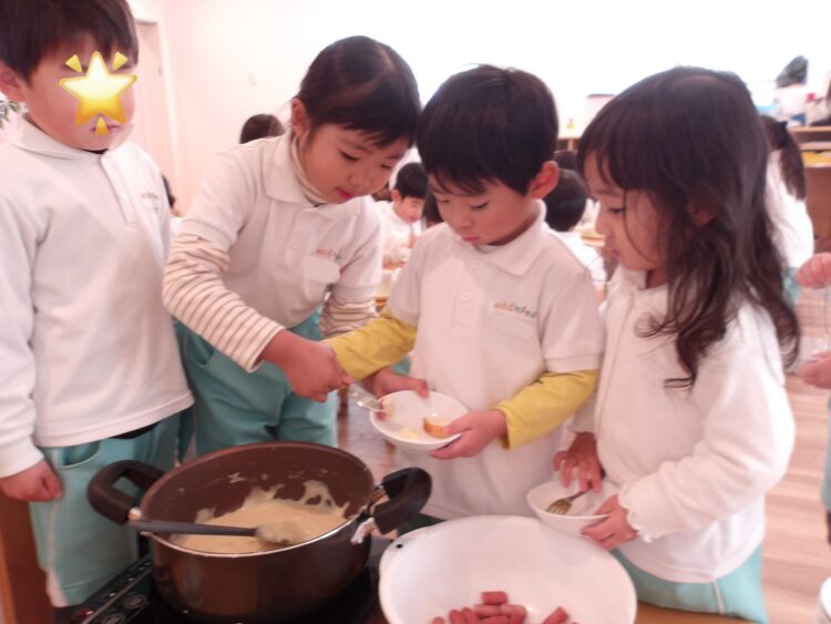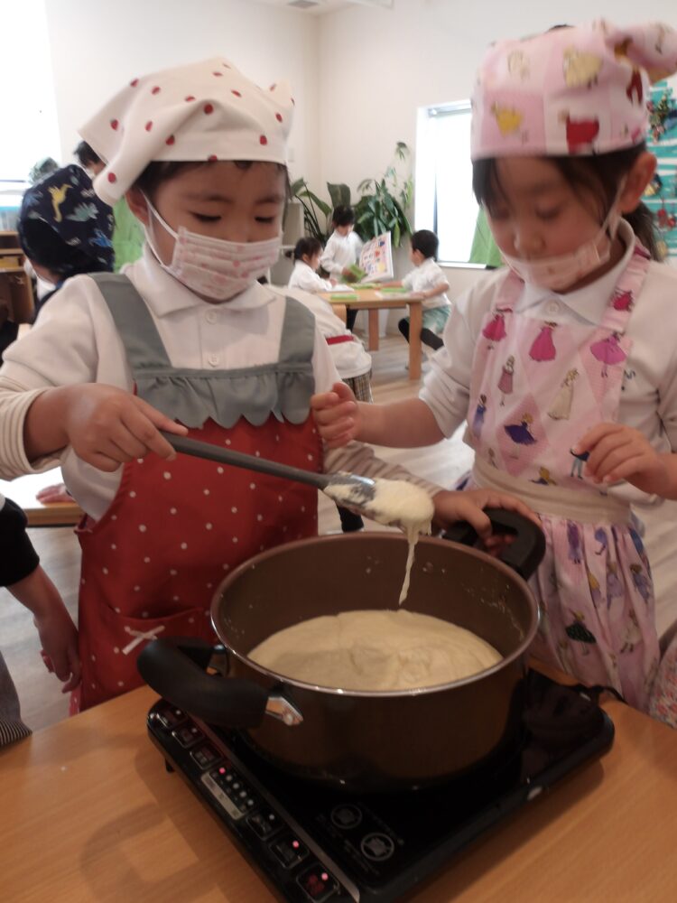 チーズが大好きなお友だちが多く、「まだ残ってる?」「おかわりしたーい!」ともりもり食べる姿が見られました。