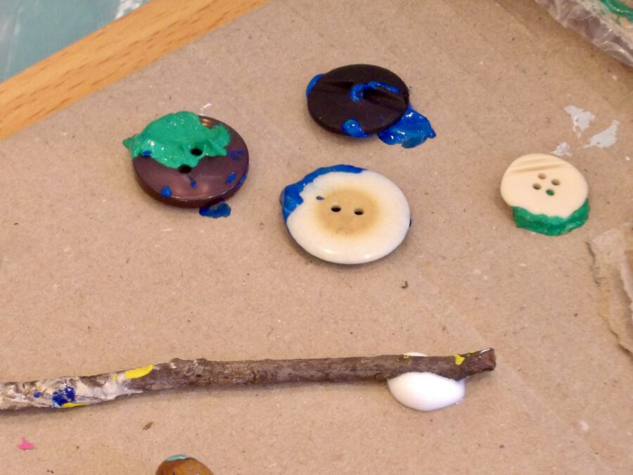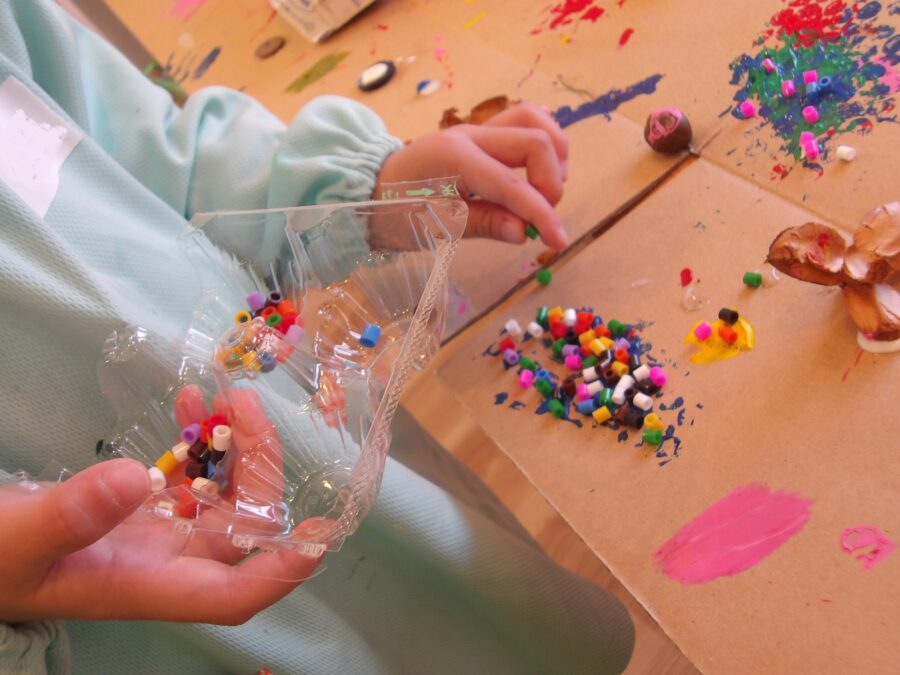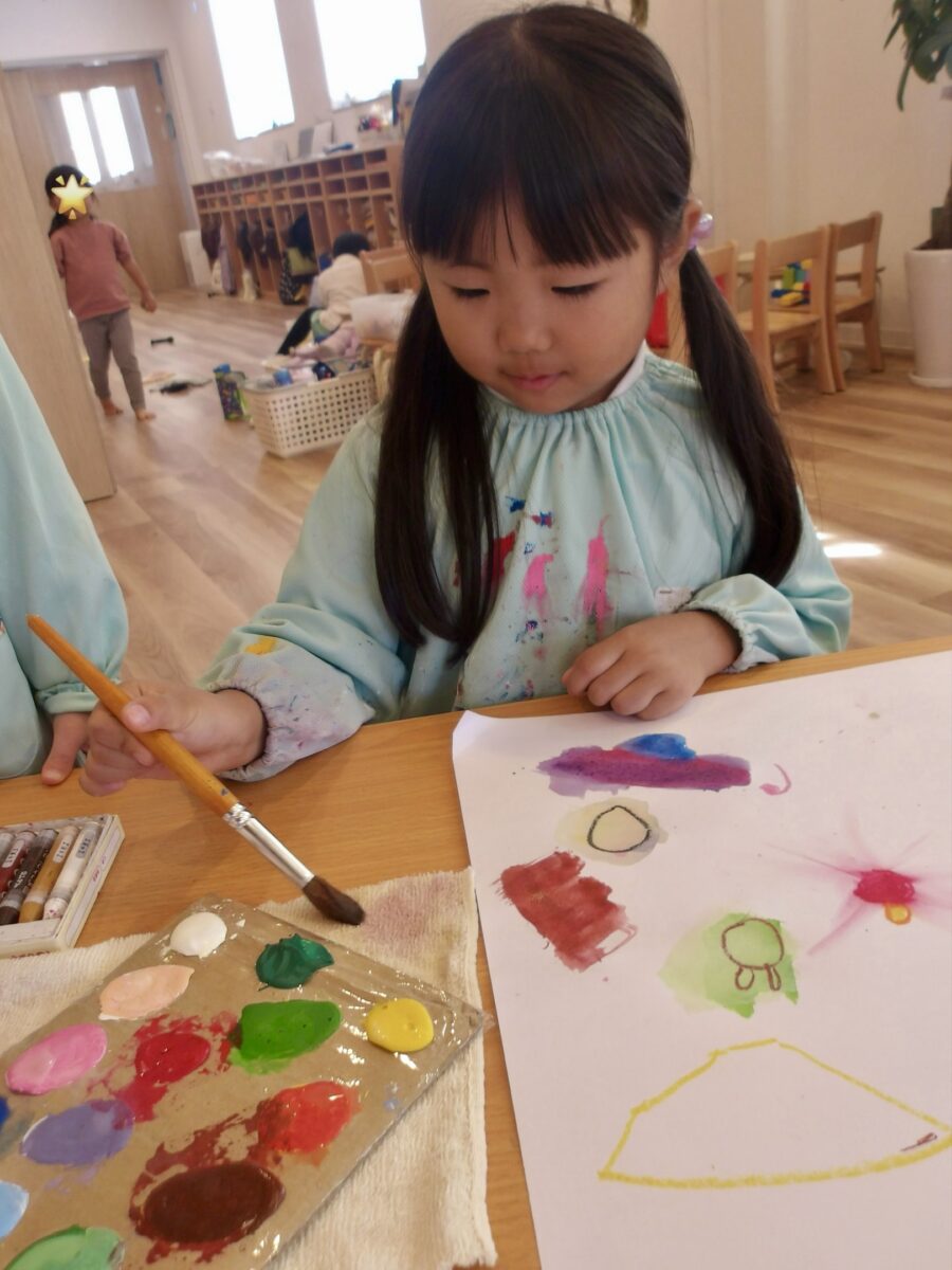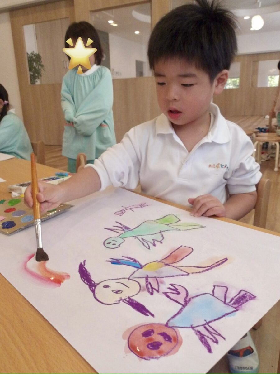 お友だちと一緒に色を混ぜたり、素材を貼ったり…色んなことを試しながら工夫していましたよ。