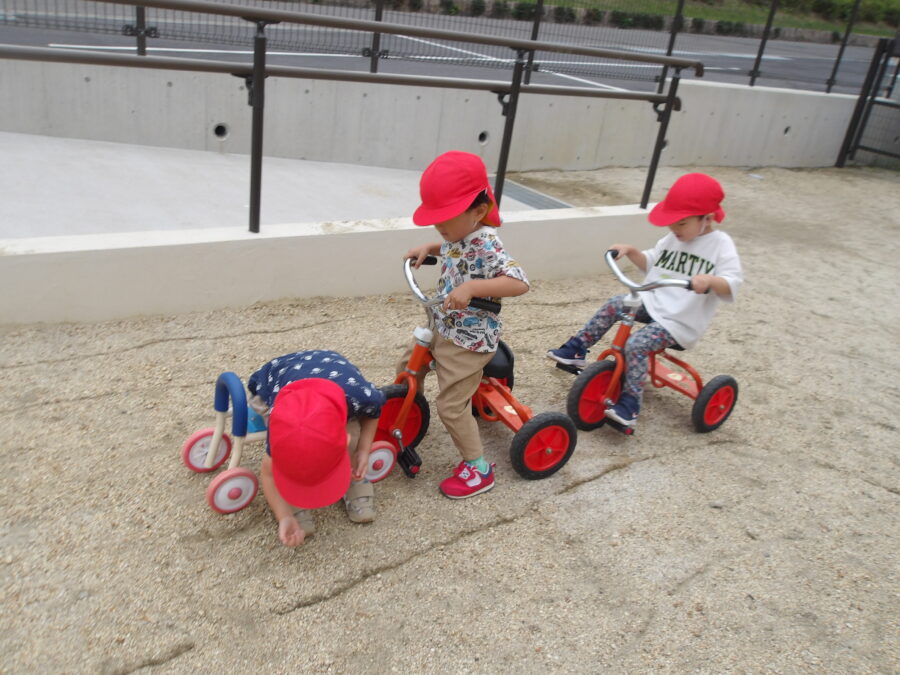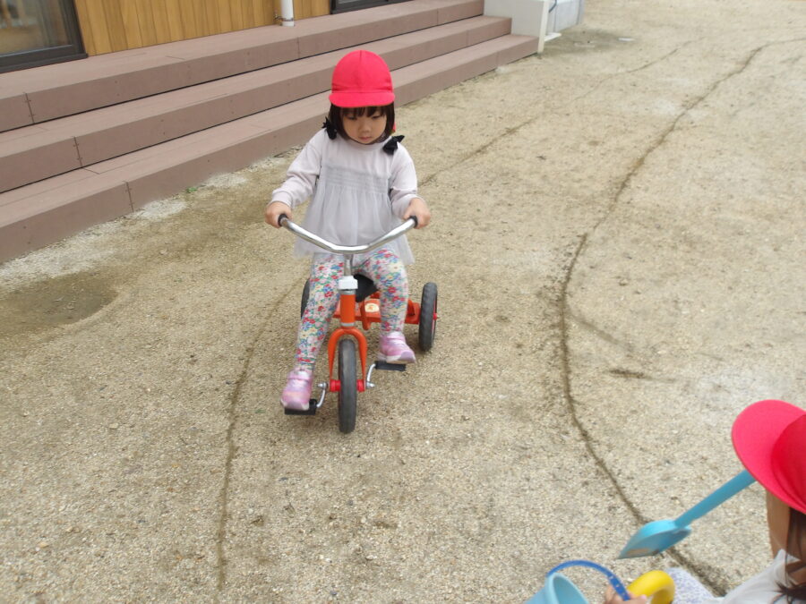 保育者が描いたサーキットコースを三輪車で走っていましたよ。