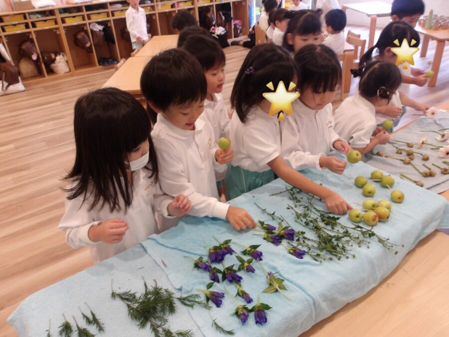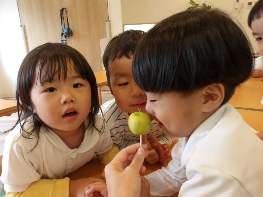 「これ食べられる?」「りんごの匂いがするー!」と嬉しそうな子どもたち。