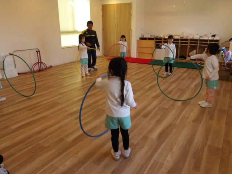誰のフラフープが最後まで残るのか、フラフープが倒れるまでわからないドキドキ感も面白く、「もう一回やりたい!」と何回戦も行いました。