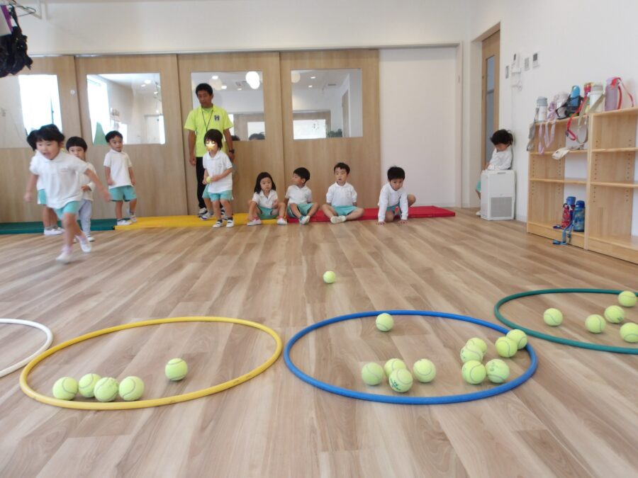 今日の体操教室はフラフープやボールを使って体を動かしました🌟