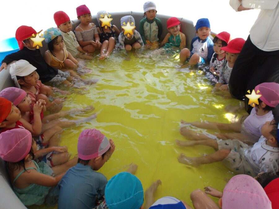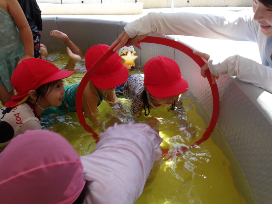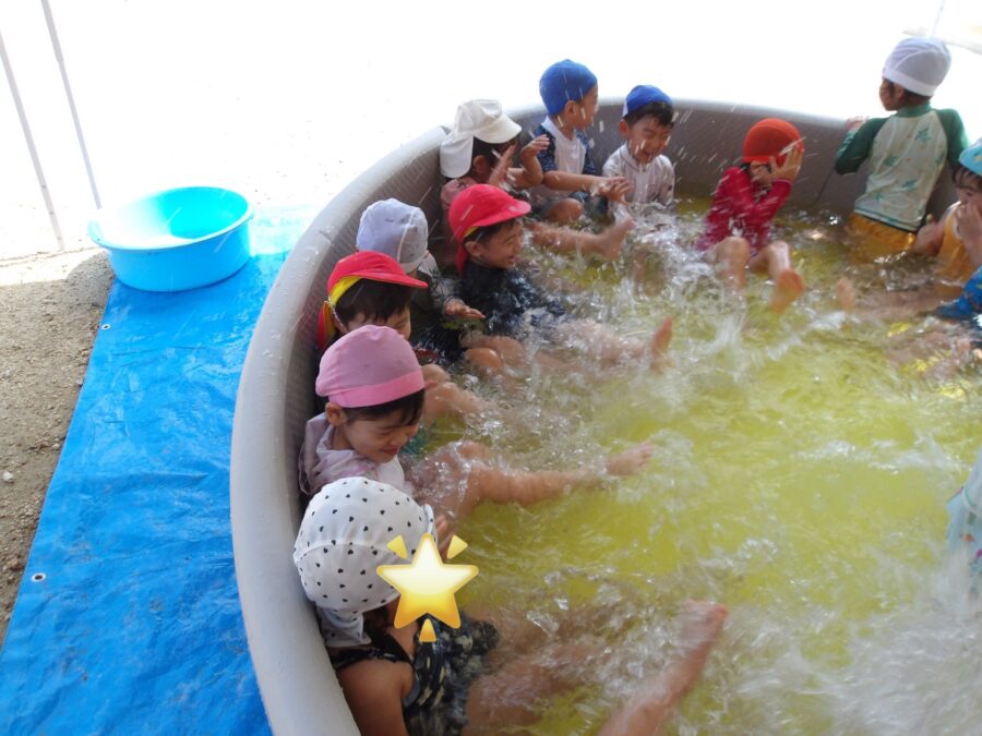 保育者の声に合わせて足をバタバタ!お水をバシャバシャ!