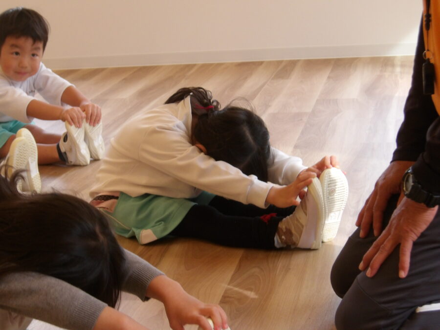 幼児クラスののたちも体をほぐしてからスタートです。