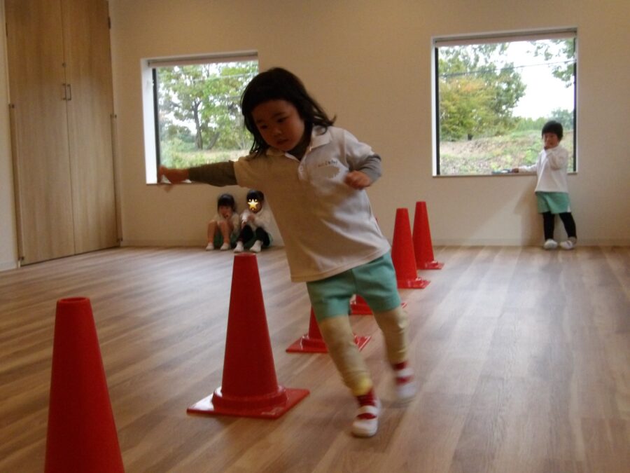 コーンの間をジグザグと走る進み方、コースもだいぶわかってきた様子でした。