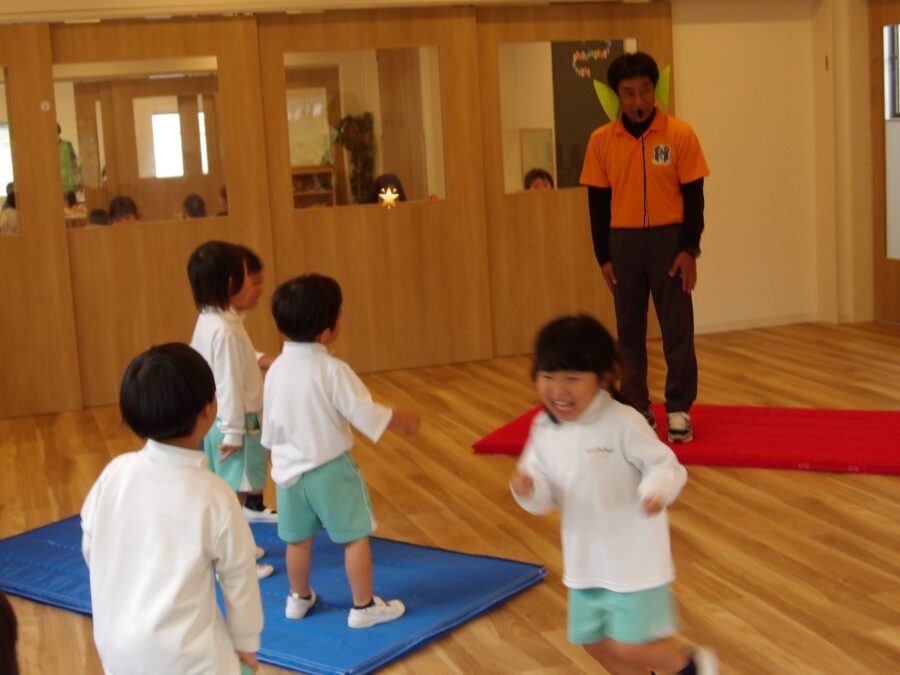 「きゃー!」と声を上げながら逃げて楽しむ子どもたちでした。
