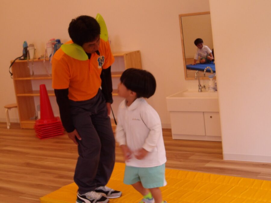 何度もやってみると、横への跳び方が分かり、跳び方が分かると足が高くあげられるようにもなってきました。