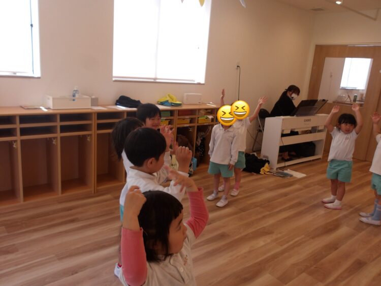 ピアノの音楽が変わるとポーズを変えたり、止まったりしてしっかりと音楽を聴きながら行進してました!