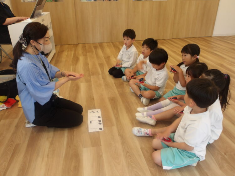 最後はたいよう組さん たいよう組さんは音楽のリズムが難しくなってもカスタネットでリズムについて行って叩くことができていました!