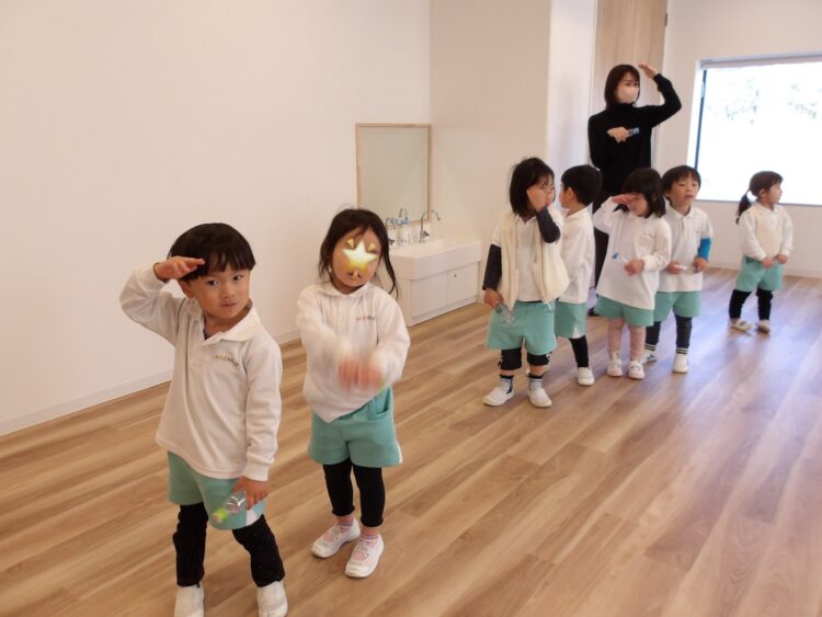 そら組はピアノの音をよく聞いてリズムを取ろうとする姿が見られ、にじ・たいよう組は一人ひとりがリズムに乗れるようになり、手拍子やカスタネットの演奏では音がずれなくなってきましたよ✨