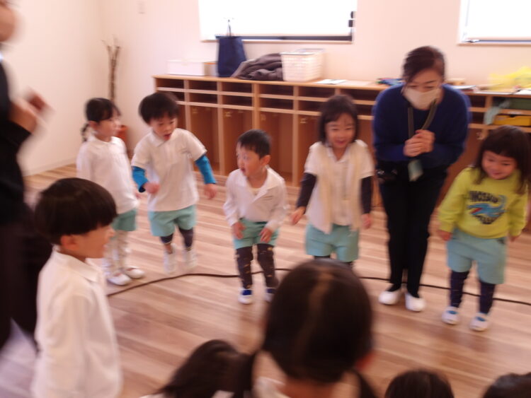 ピアノの音のタイミングでみんなでジャンプ!