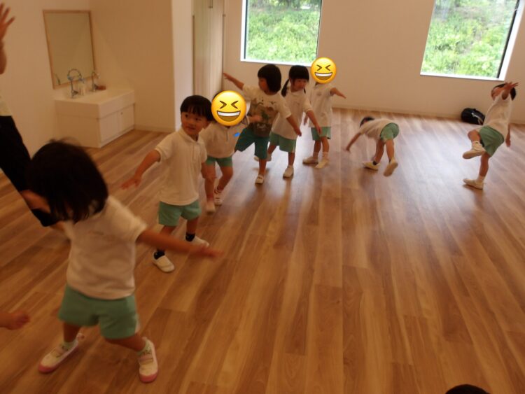 リズムに合わせて行進〜! 音が変わるとポーズを変えたり、止まったりと楽しそうでした!次はにじ組さん!
