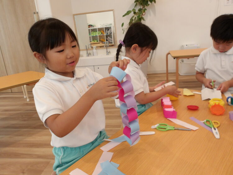 そら組の隣ではたいよう組さんが輪飾りを作っていました。