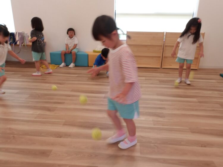 両方の手に同じ力を入れるのが難しかったり、ボール同士がぶつかって跳ねていってしまったり。