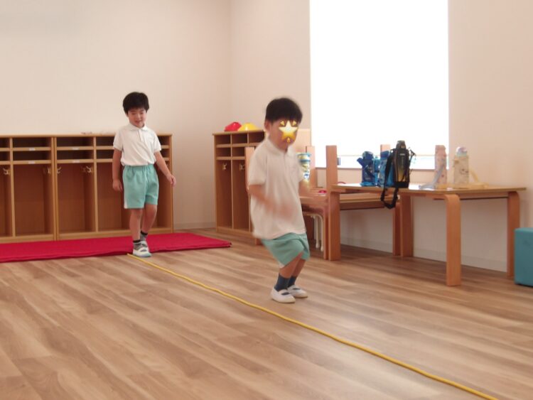 たいよう組はロープを軸に左右に両明日ジャンプと片足ジャンプ。