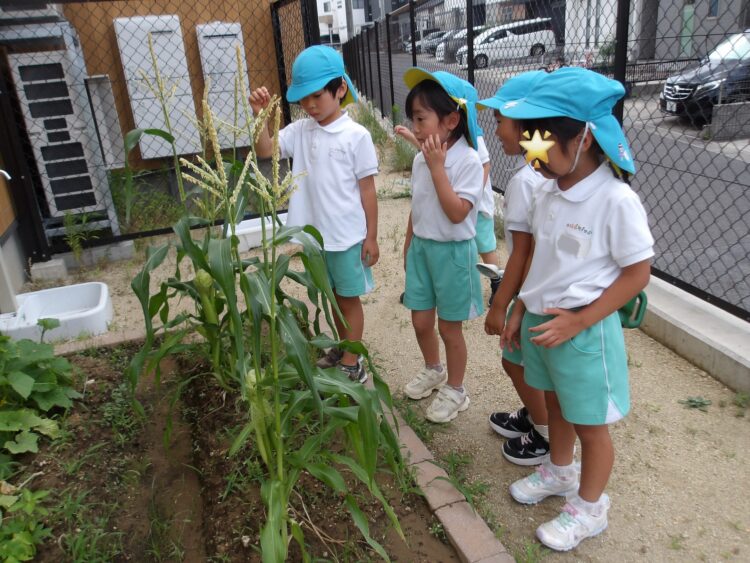 7月入ってすぐの頃、これくらいの背丈だったとうもろこしは、
