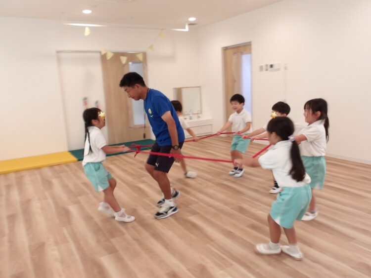 力の加減と協力し合うことが大事な年長さん向けのゲームでした。