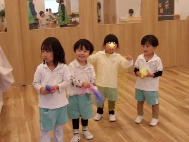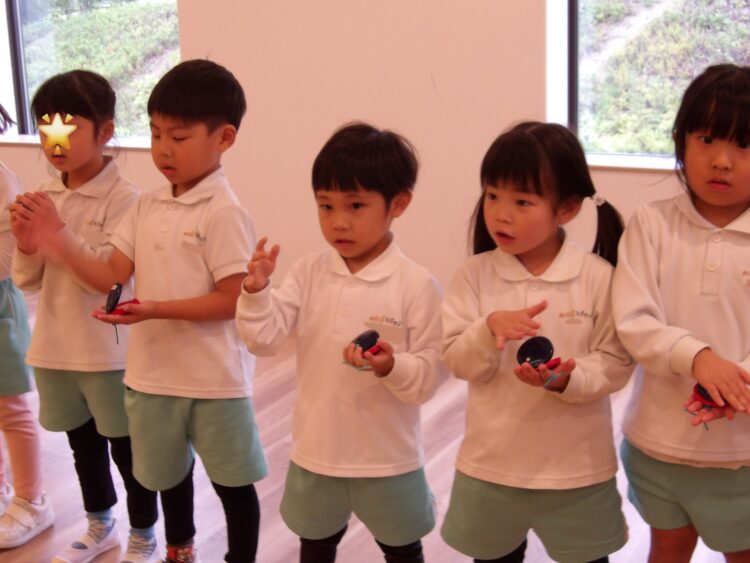 リズムやテンポの乗り方が分かってきた子が多く、ピアノの音に合わせて叩くカスタネットや手拍子の音が綺麗に合うようになってきました✨