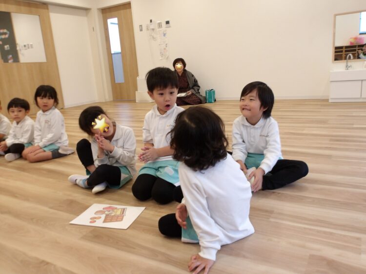 お菓子の名前のリズムで手拍子するのもリズミカルにできていました。