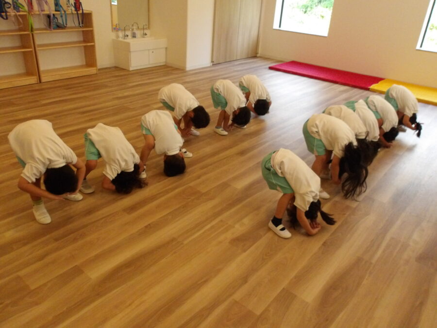 先生の真似をしながらしっかりと準備運動をする姿がありました。