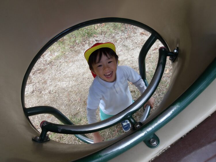 友だちと手を繋いで一緒に転がったり、何度もなんども楽しんでいました!