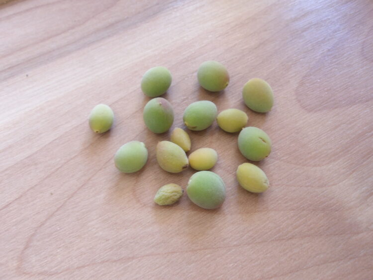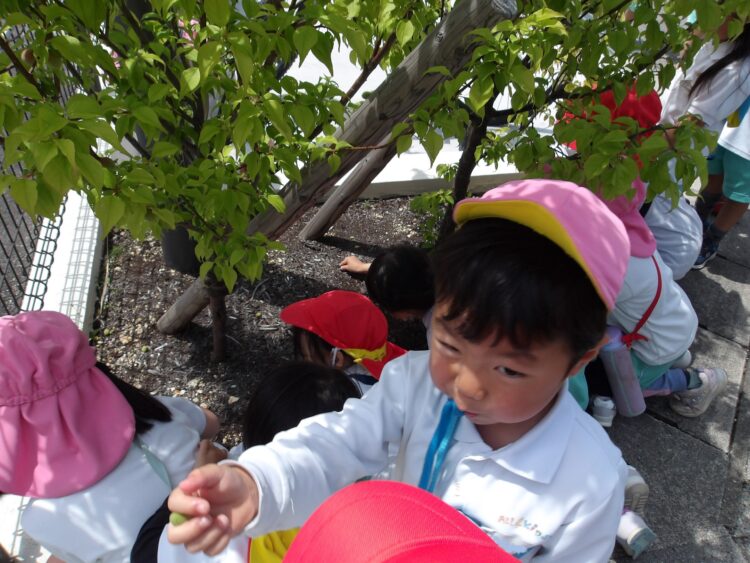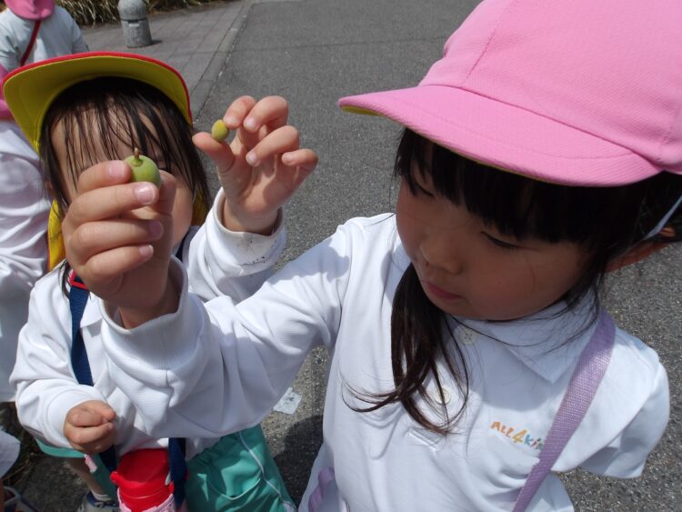 保育園の前に咲いている梅の木の下に木の実がたくさん落ちていたのです。
