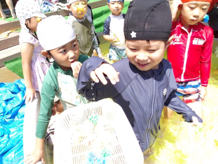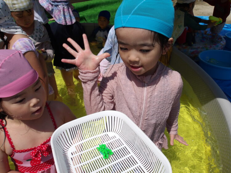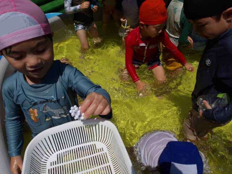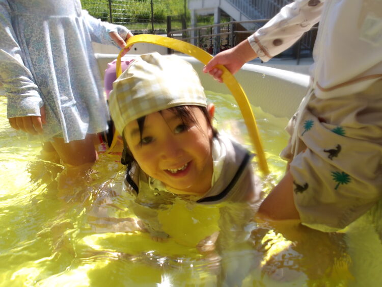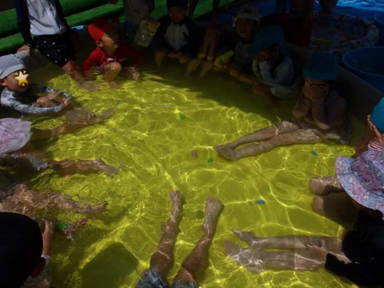 にじ・たいよう組のプールあそびは今日もダイナミックでした。